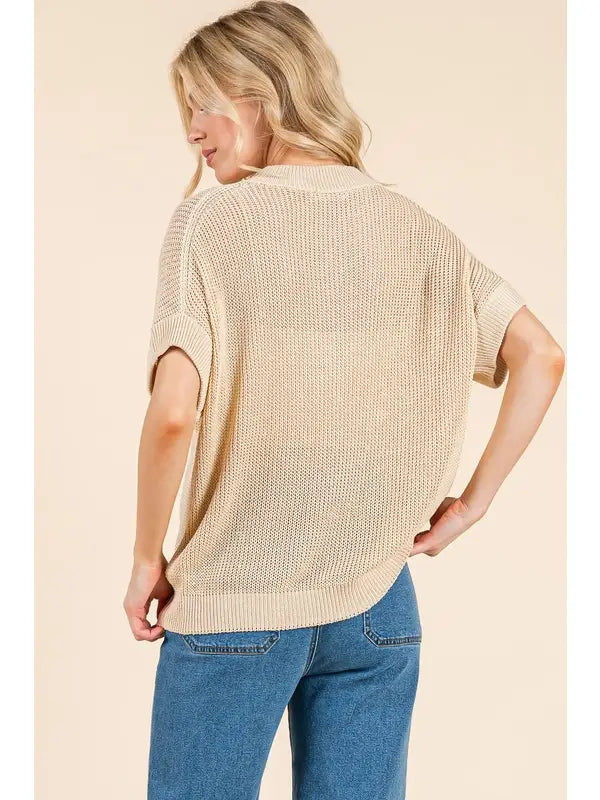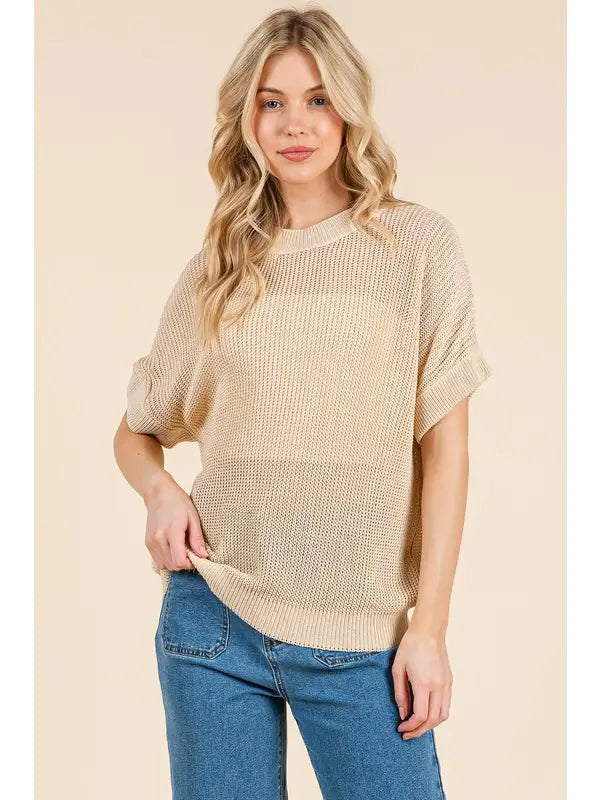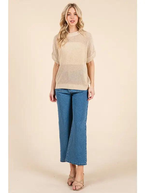Sheer Knit Short Sleeve Sweater